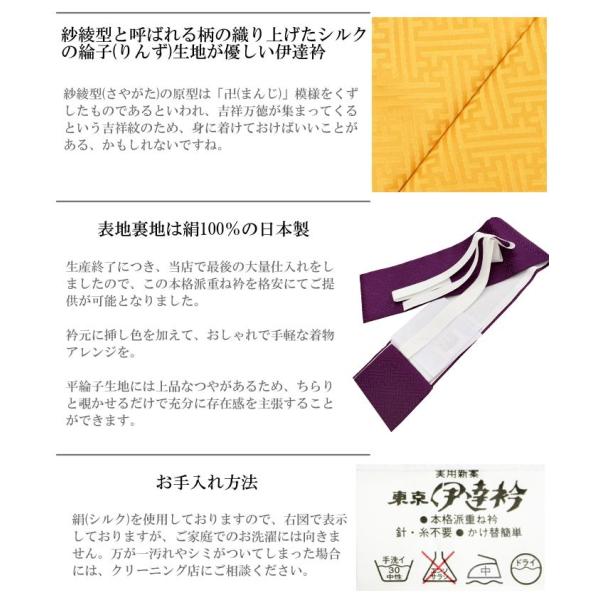【在庫限定】重ね衿 伊達衿 重ね襟 振袖 礼装 留袖 訪問着色無地 平綸子 地紋入り 紗綾型 成人式 正絹 表絹100%レディース 全20色 日本製N0984