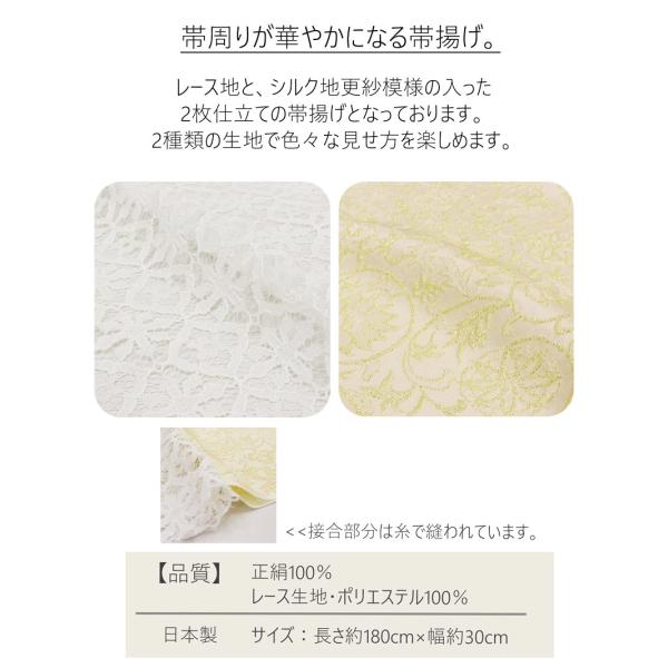 二枚仕立てのレース地とシルク地で色鮮やかな帯揚げ。