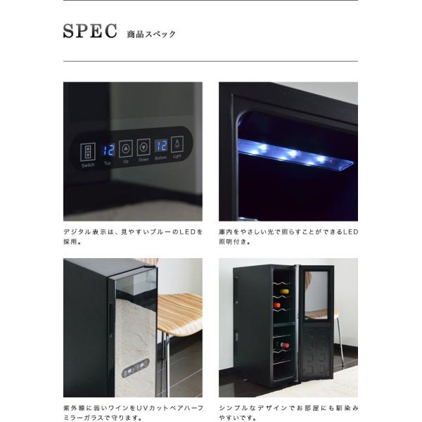 上下の温度設定が個別に可能なので、赤ワインと白ワインを一緒に保管することもできます。ラックを取り外すせば、ロングボトルや太めのワインなどの収納も可能。また、紫外線から守るUVカットペアハーフミラーガラスを装備しており、シンプルなデザインながら、実用性の優れたワインセラーです。