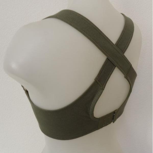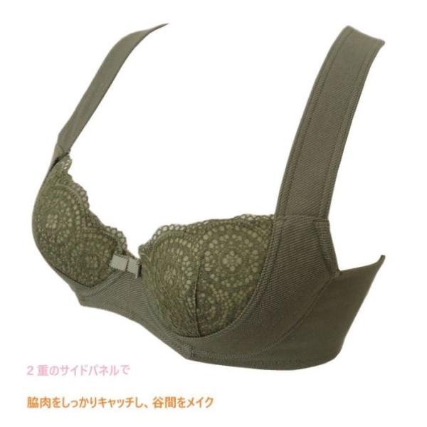 「美姿勢ブラジャー」 ワイヤー入り 補整下着 (カーキ) 広幅ストラップ バッククロス 脇高 補正下着(A70 A75 A80 B70 B75 C70 C75) 新品 (送料無料)