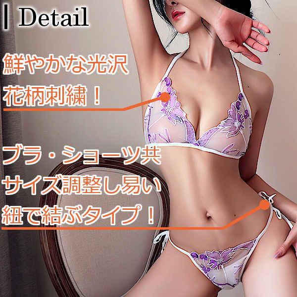セクシーランジェリー ブラ&ショーツ ブラジャー シースルー ブラ ショーツ セット 紐パン 花柄レース 下着 レディース インナー 三角ブラ 過激 3カラー