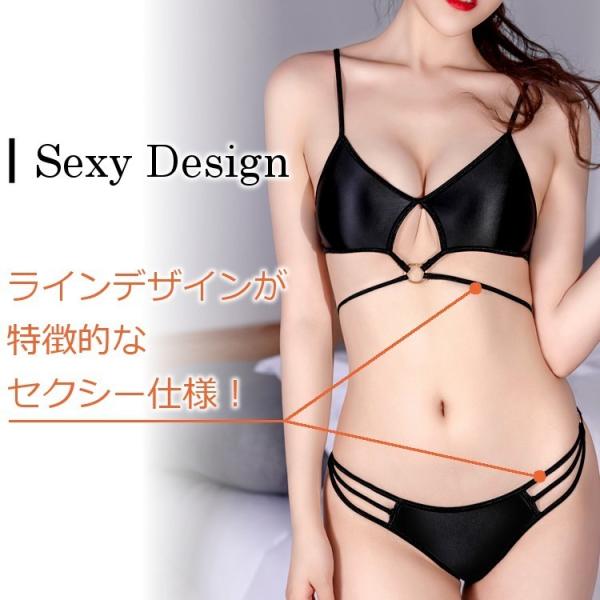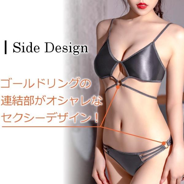 光沢のある素材を使用したセクシーブラ&ショーツ。