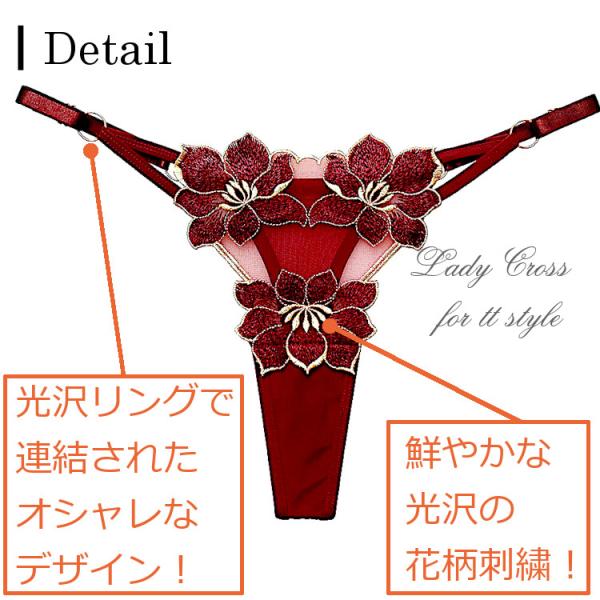 フロントに花柄を施したセクシーTバックショーツ。