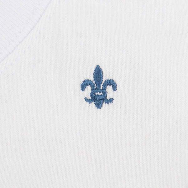 ・左肩のユリの紋章の刺繍は配色で配置。ワンポイントが効いた遊び心のあるTシャツです。