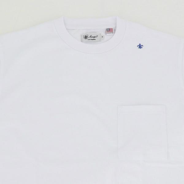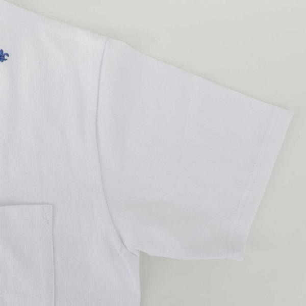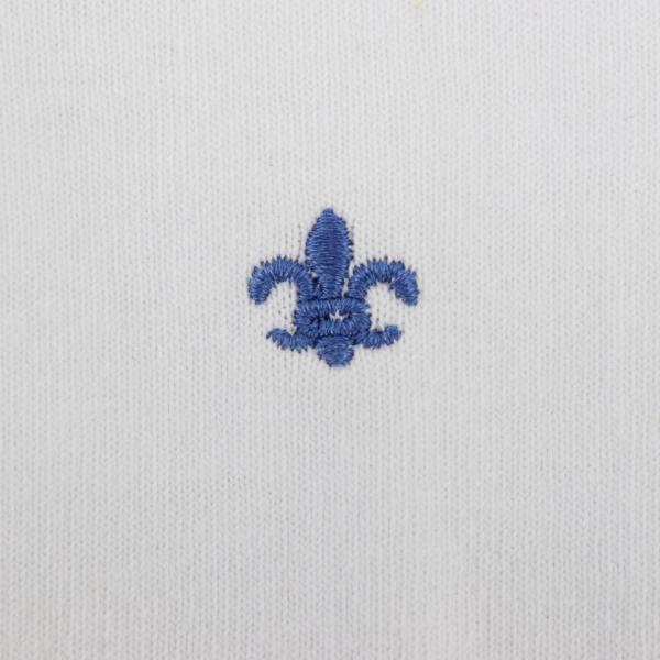 ・左肩のユリの紋章の刺繍は配色で配置。ワンポイントが効いた遊び心のあるTシャツです。