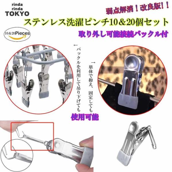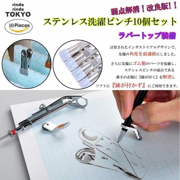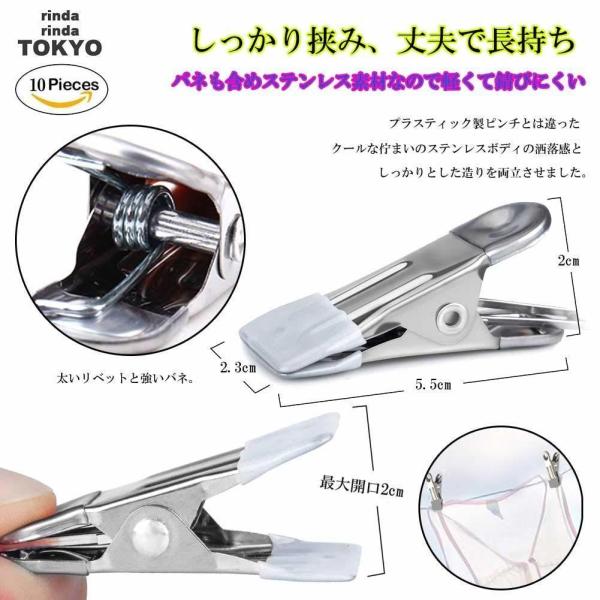 洗濯ばさみ 洗濯バサミ ステンレス 10個 セット 改良型 洗濯ピンチ おしゃれ 強力 跡が付かない 滑り止め クリップ rinda