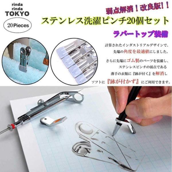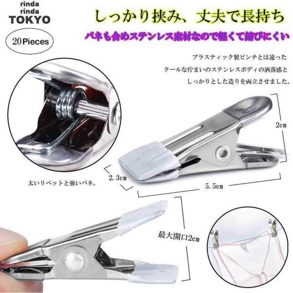 洗濯ばさみ 洗濯バサミ ステンレス 20個 セット 改良型 洗濯ピンチ おしゃれ 強力 跡が付かない 滑り止め クリップ rinda