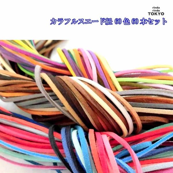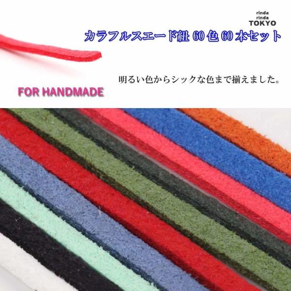 スエード スェード 革ひも 紐 全60色 60本 3mm 1m レザー紐 手作り レザー ヒモ カラフル ミックスカラー アクセサリー パーツ rinda