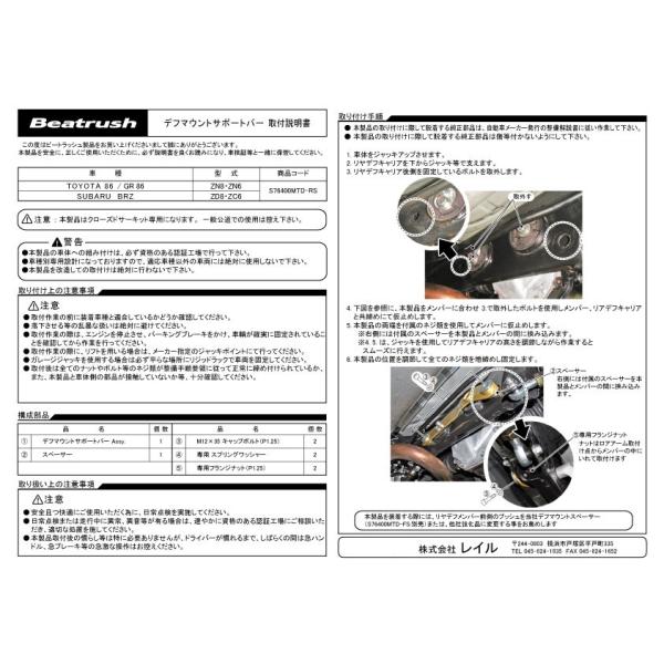 リヤメンバースペーサー トヨタ 86 ZN6・GR86 ZN8、スバル BRZ ZC6・ZD8 ビートラッシュ レイル 【S76402MTD-SS】