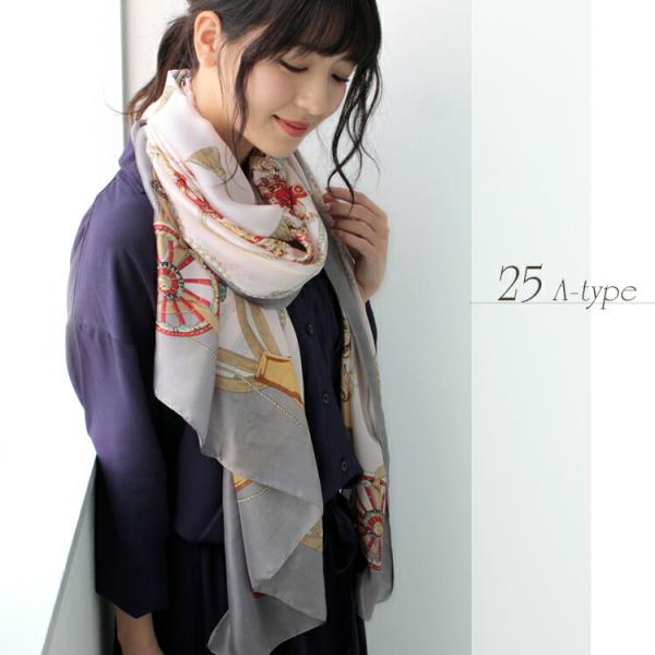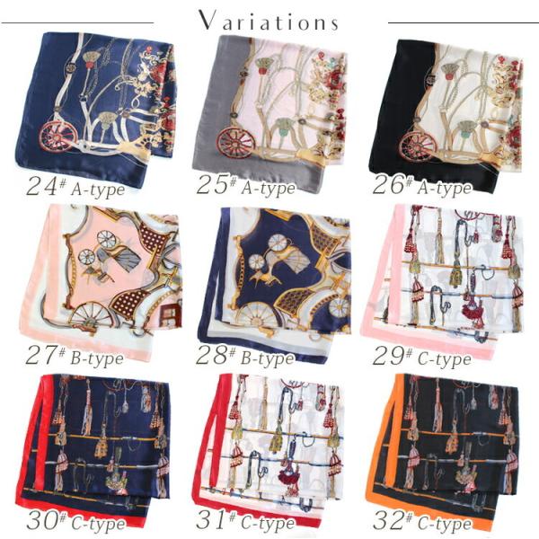 シルク タッチ 大判 スカーフ レディース 春 夏 秋 冬 用 サテン 生地 馬 馬車 柄 長方形 全90色 d2 プレゼント クリスマス