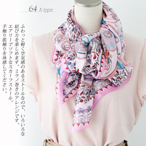 シルク タッチ 大判 スカーフ レディース 春 夏 秋 冬 用 サテン 生地 馬 馬車 柄 長方形 全90色 d2 プレゼント クリスマス