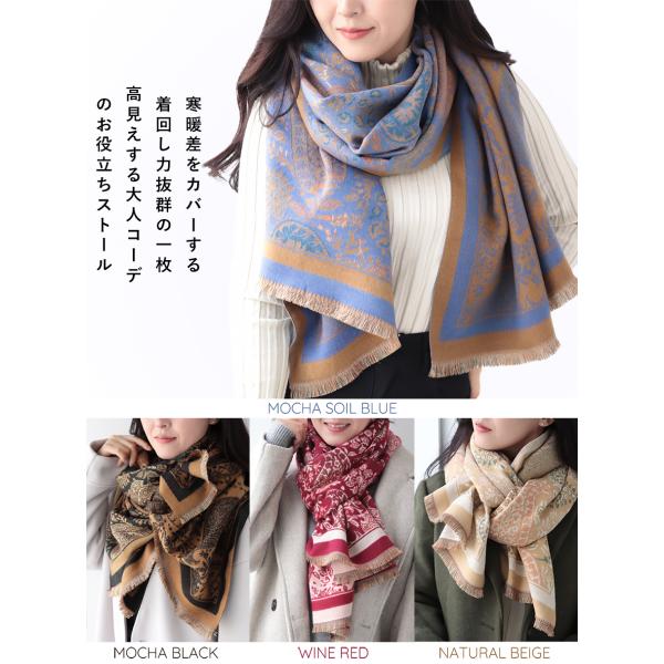 大判 ストール レディース リバーシブル 厚手 春 秋 冬 用 ペイズリー ジャガード織 高級感 軽い ふんわり 全8色 プレゼント ギフト 花見 クリスマス