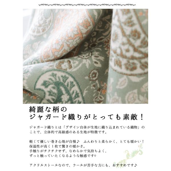 ・高級感と立体感があるジャガード織りのペイズリー柄アクリルストールです。