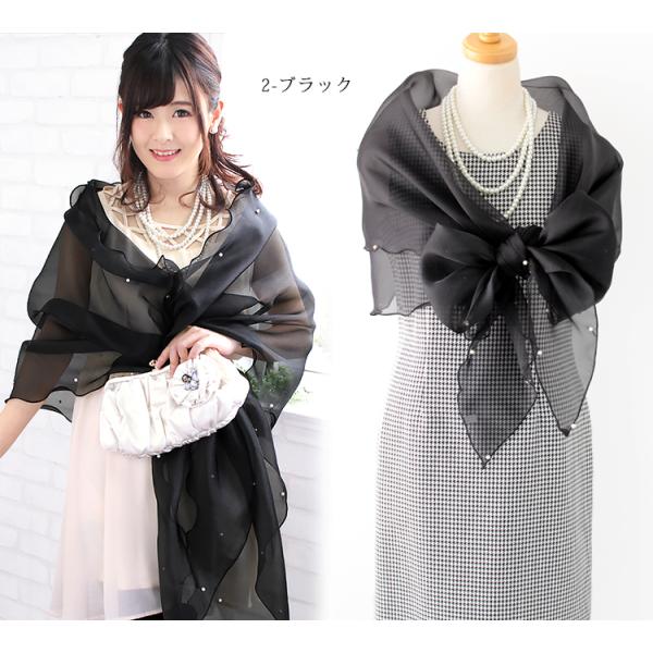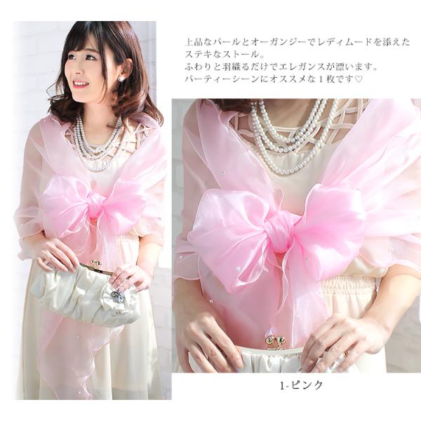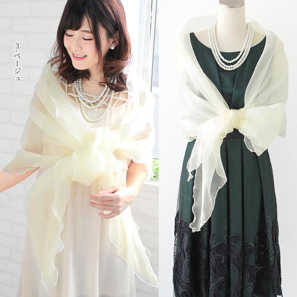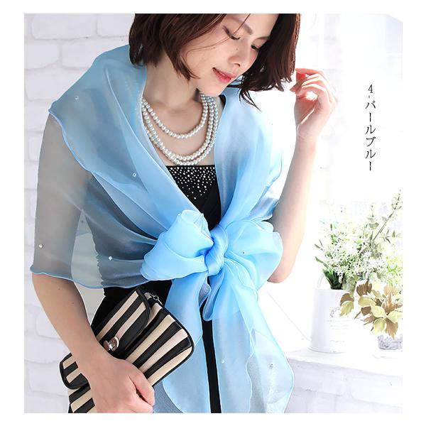 パーティーショール 結婚式 ストール ショール レディース 春 夏 秋 用 オーガンジー パール 付き 大判 無地 全35色 ブライダル お呼ばれ クリスマス