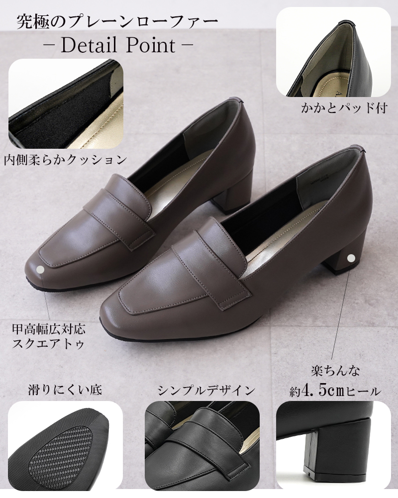 ALETTA 究極のプレーンローファー 4.5cmヒール 痛くない レディース ローファー 甲高幅広 軽量 大人 靴 柔らかい ブラック フォーマル 歩きやすい 仕事 送料無料