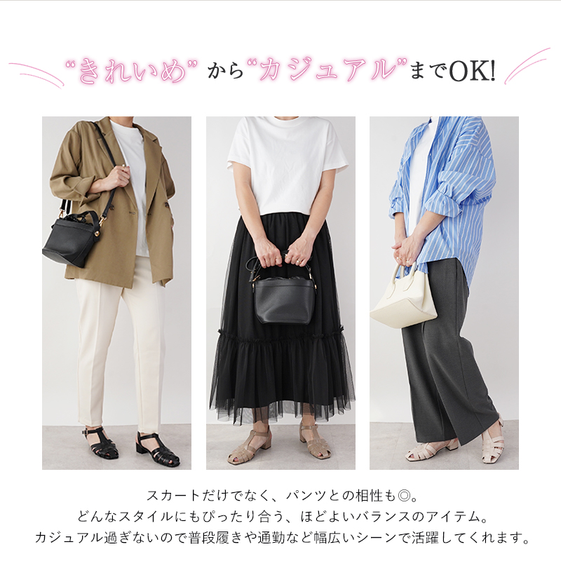 ・きれいめにもカジュアルにも使えるシンプルなデザイン。