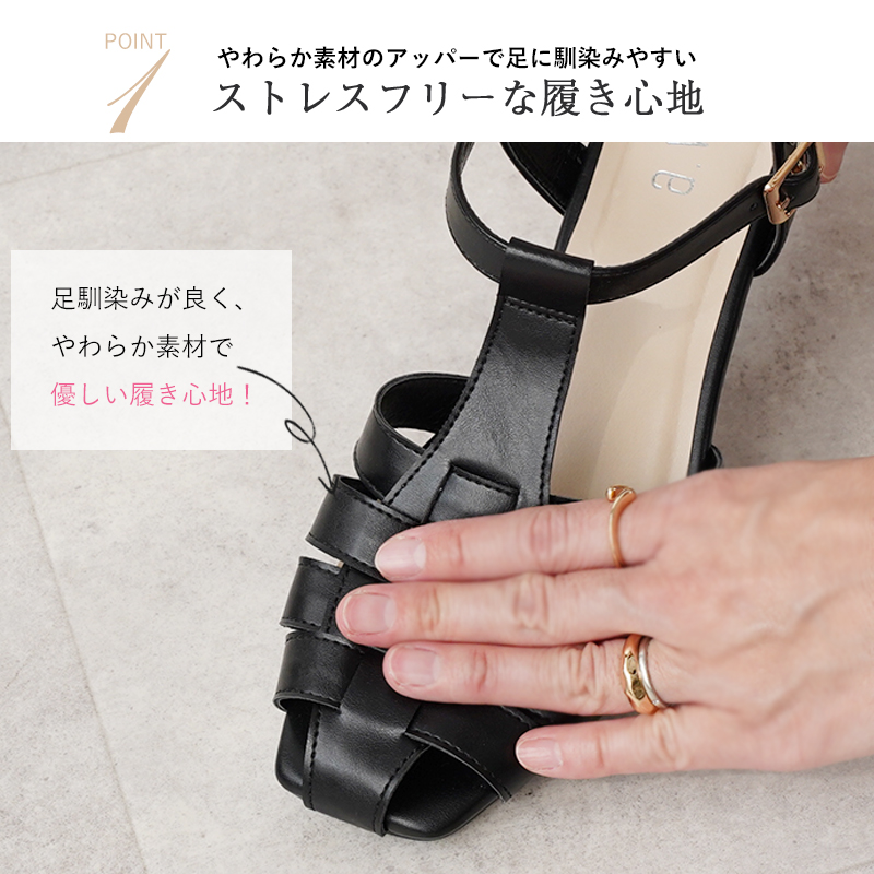 ・高すぎない5cmの太ヒールは接地面が広く、ヒールが苦手な型でも歩きやすい。