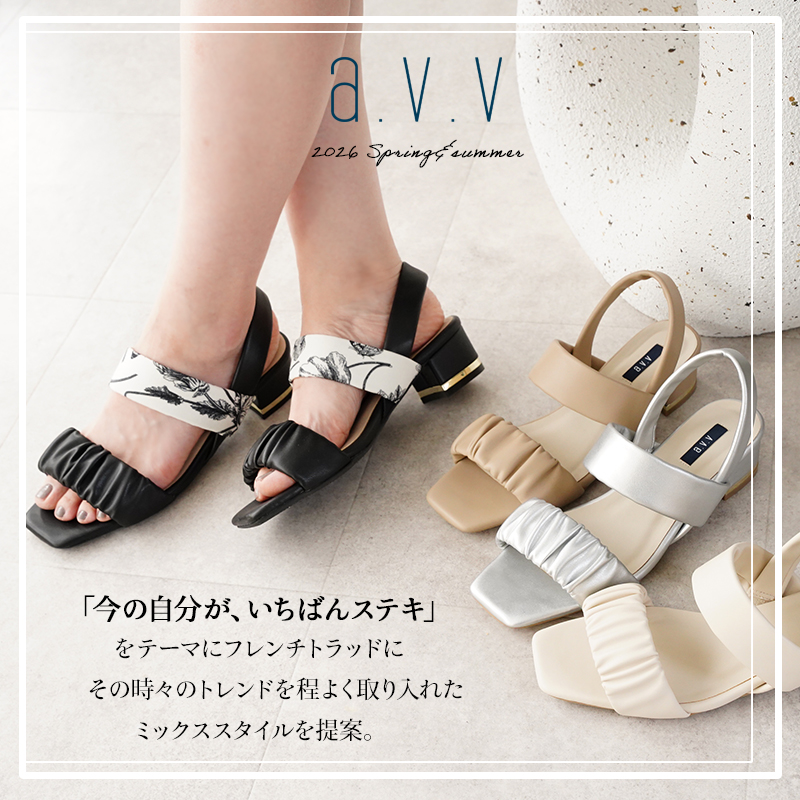 サンダル レディース ストラップ 4cmヒール ローヒール チャンキーヒール 疲れない きれいめ 26春夏新作 ブラック S-LL 痛くない 歩きやすい a.v.v. 送料無料