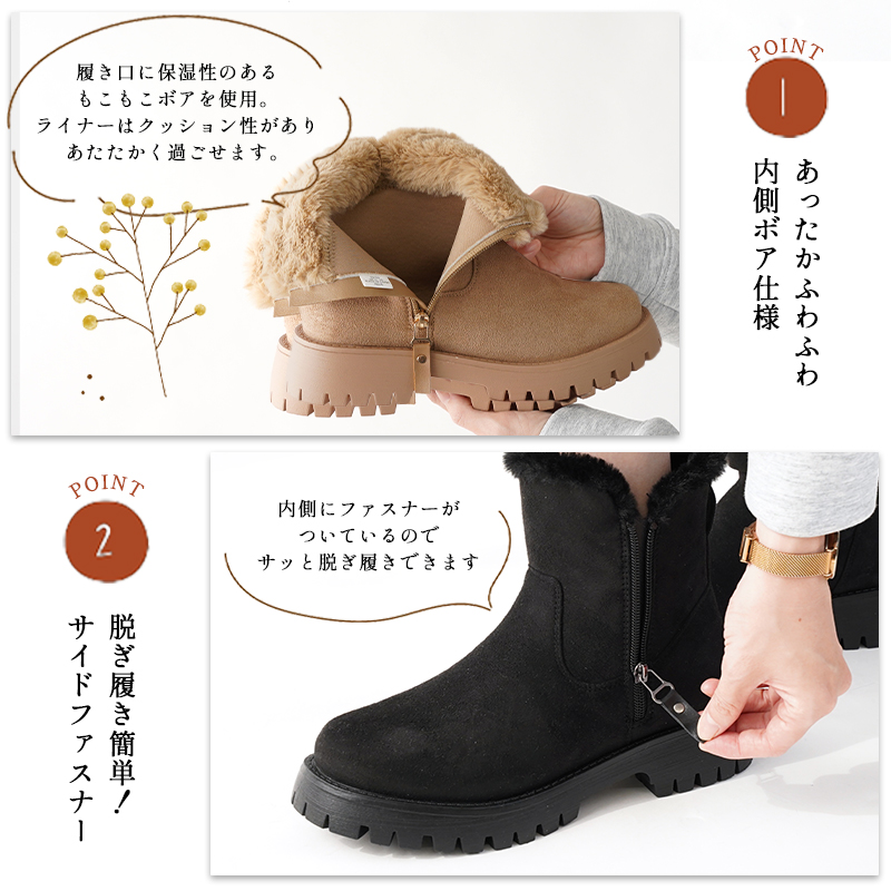 爆買 寒い季節に大活躍!もふもふボア素材のあったか快適ショートブーツ!