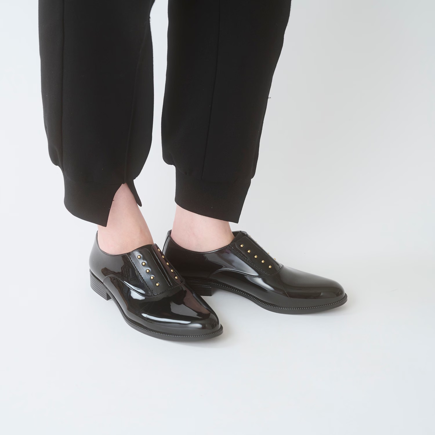 小さなゴールドスタッズがエレガントなニュアンスを演出。