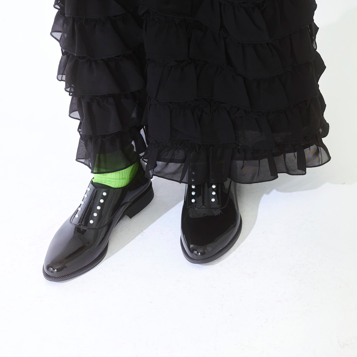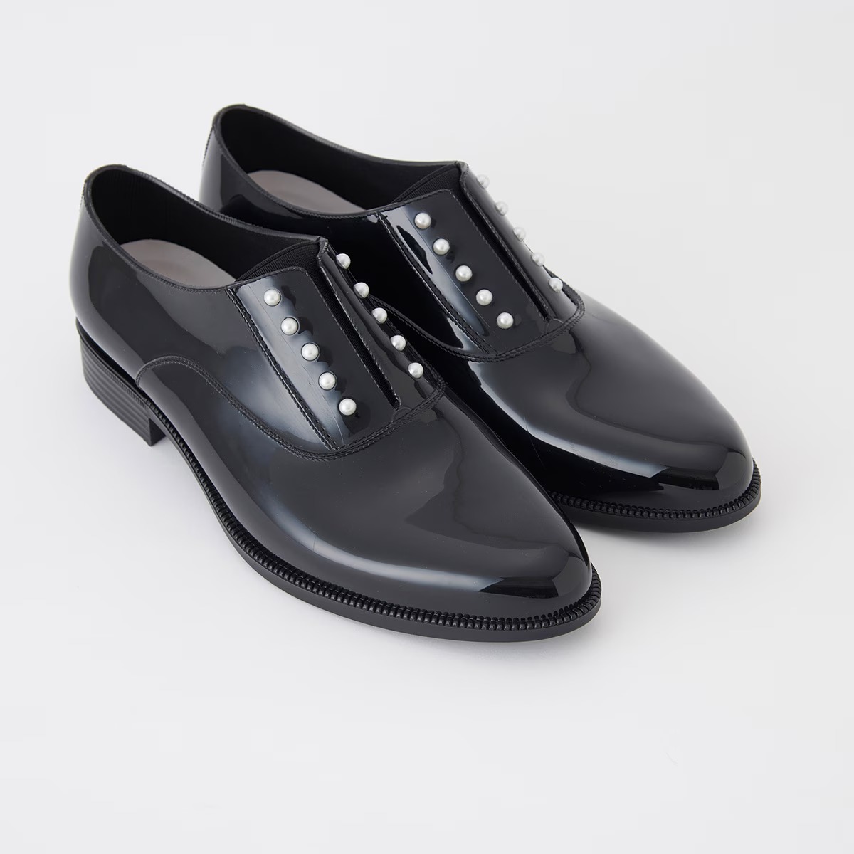 ドレッシーでマニッシュなオックスフォードシューズに、立体感のある小粒パールが愛らしさをプラス。
