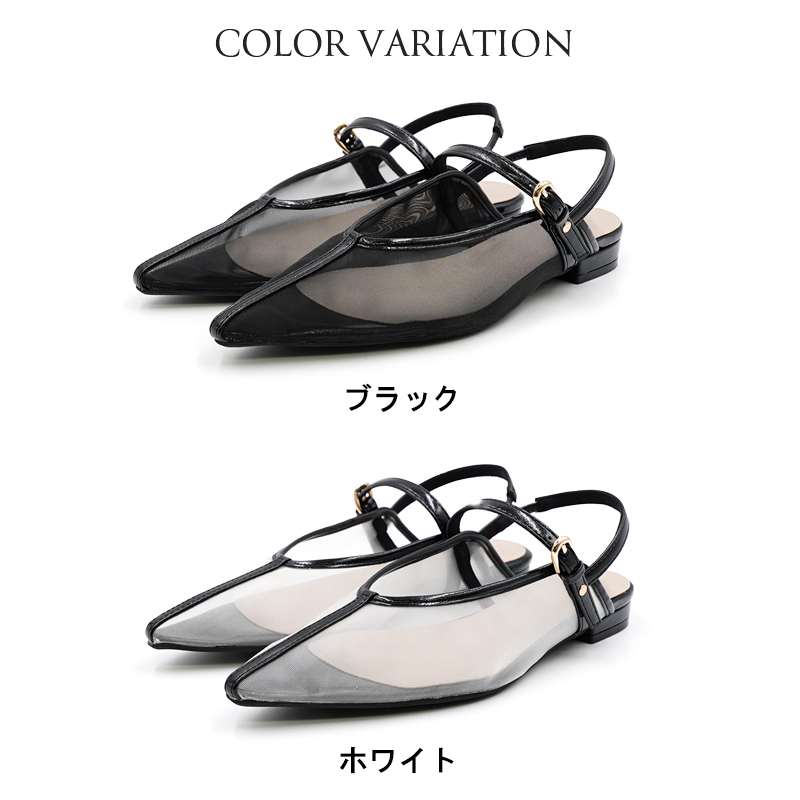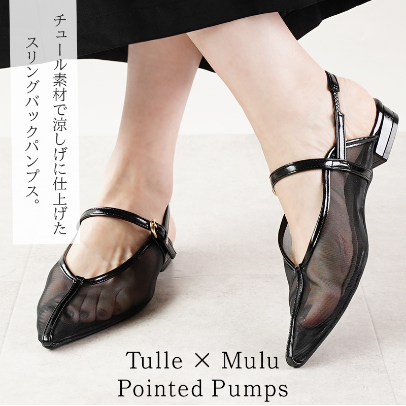 バックストラップ サンダル パンプス チュール シアー ポインテッドトゥ 2.5cmヒール ローヒール ミュールパンプス チュール レディース 送料無料※沖縄を除く