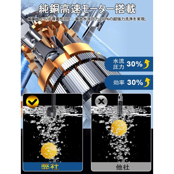 タンク式高圧洗浄機の本体とガンが一体化したコードレスモデル。高性能な純銅モーターを内蔵し、最大8MPaの水圧&最長12mの射程で、しつこい泥汚れや高所の掃除もパワフルに対応。8L/分の高出水量で作業効率も抜群。電源不要で場所を選ばず使えます。