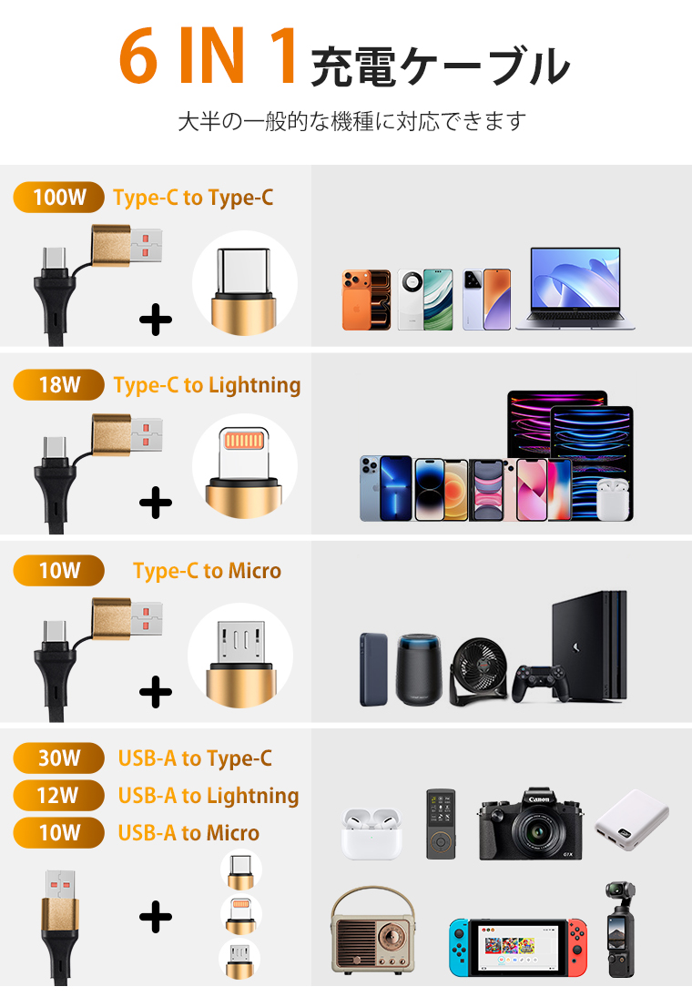 2点目半額クーポン 3in1 充電ケーブル 巻き取り 6A急速充電 Type-Cケーブル ライトニングケーブル タイプc Lightning Micro iPhone/Android 車用 充電コード