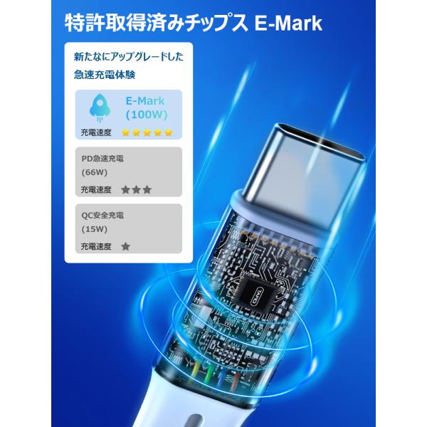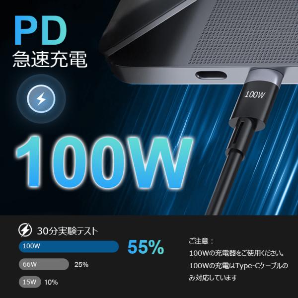 最大出力100WのPDのに対応して、通常の充電ケーブルよりも速く充電できます。携帯電話でもiPadでもパソコンでもUSB-C機器でも対応し、急速に充電できます。