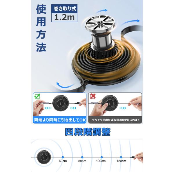 2点目半額クーポン 3in1 充電ケーブル 巻き取り 6A急速充電 Type-Cケーブル ライトニングケーブル タイプc Lightning Micro iPhone/Android 車用 充電コード