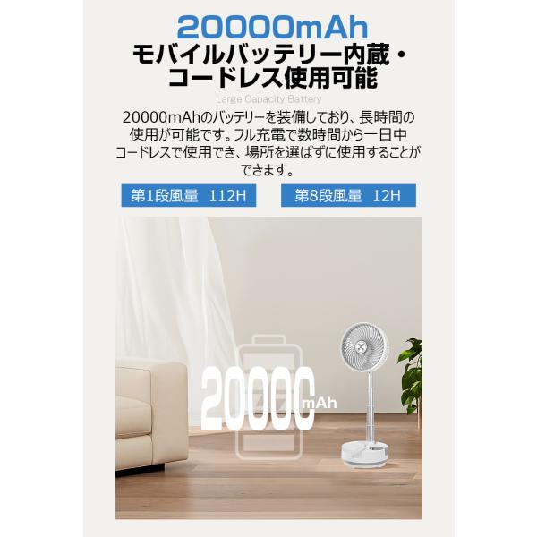 扇風機 首振り 卓上 20000mAh モバイルバッテリー DCモーター 卓上扇風機 静音 8段階風量 防災 充電式 サーキュレーター リビングファン