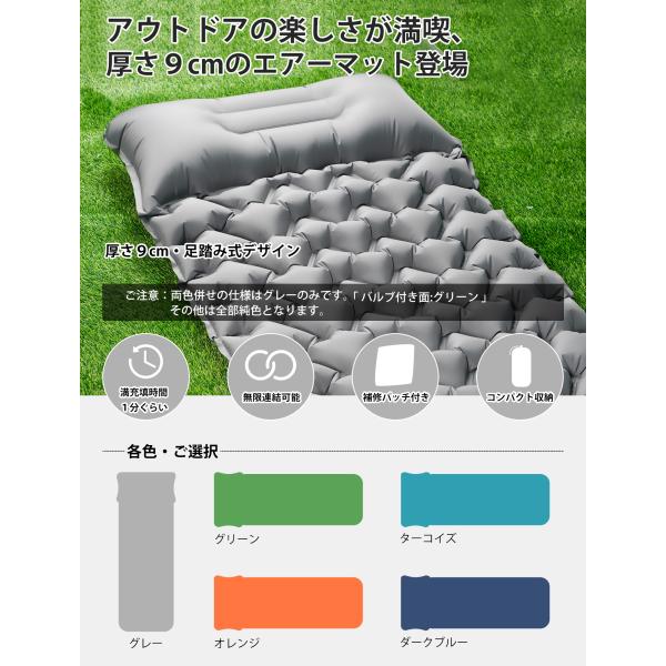 エアーマット 車中泊 エアーベッド 9cm キャンプマット 枕付 折り畳み キャンピング 足踏み幅広厚手 アウトドア キャンプ 地震防災グッズ