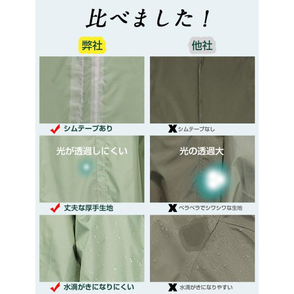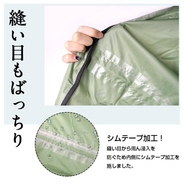 表面には撥水&防水二重加工を施し、縫う面は防水加工をしっかりしており、防水効果が抜群、長時間の雨でもしっかり雨を防ぎます。