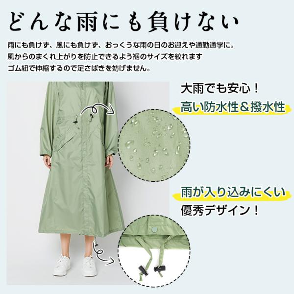 5%OFF レインコート 自転車 レディース メンズ レインウェア 前開き ロング丈 リュック対応 袖付 男女兼用 おしゃれ 送迎 防水 通勤 通学 梅雨