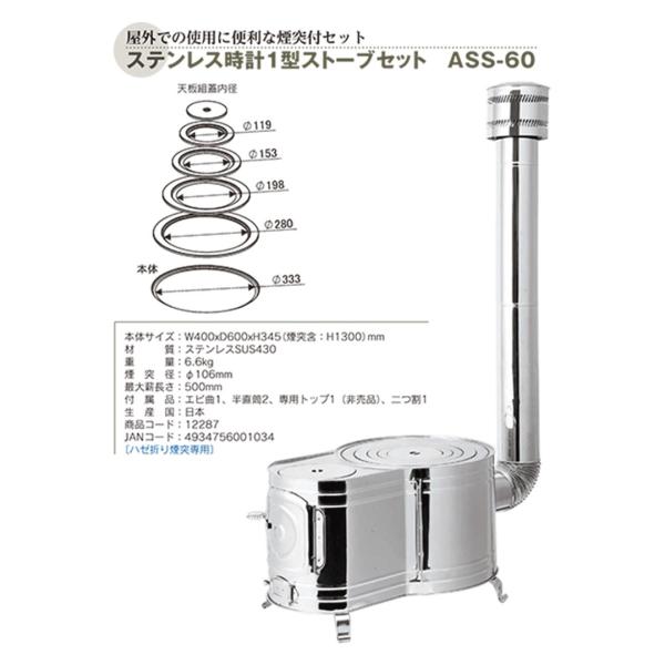 ホンマ製作所 薪ストーブ ステンレス 時計1型ストーブセット ASS-60
