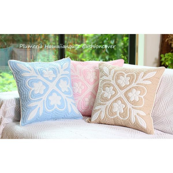 ハワイアンキルト クッションカバー 本格手縫い ハワイアン キルト リゾート インテリア 寝室 リビング【 プルメリア ベージュ 45X45cm】