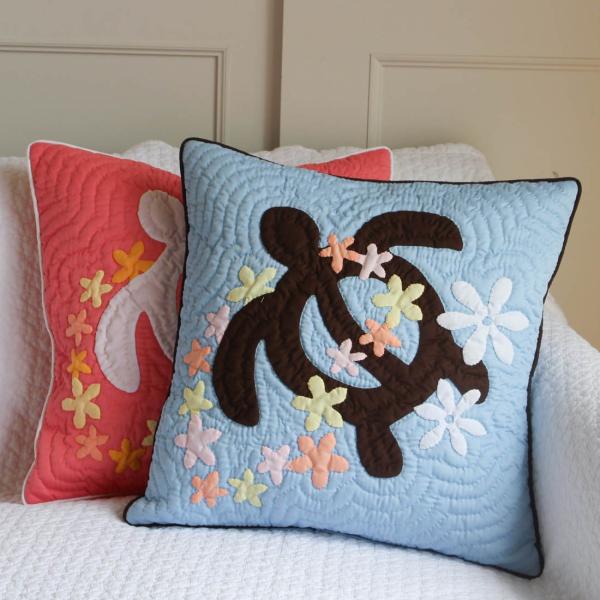 ハワイアンキルト キット しつけ済み 製作用キット ハワイアンキルトキット 【クッションカバー】【 ホヌ かめ ブルー 45X45cm】【初心者】