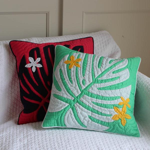 ハワイアンキルト キット しつけ済み 製作用キット ハワイアンキルトキット 【クッションカバー】 【モンステラ グリーン 45X45cm】【初心者】