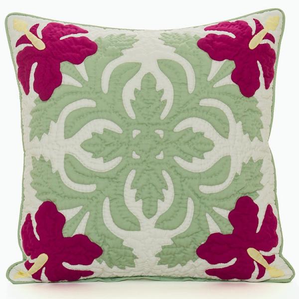 ハワイアンキルト キット しつけ済み 製作用キット ハワイアンキルトキット 【クッションカバー】 【 プルメリア グリーン 45X45cm】【初心者】