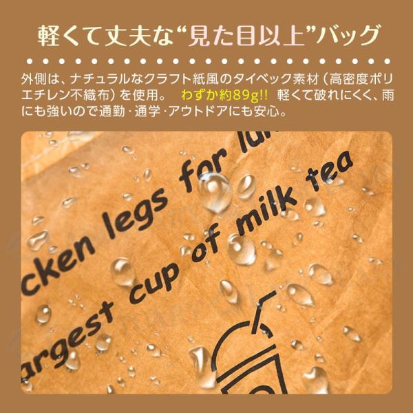 デュポンTM製・耐水性に優れた"タイベック(R)"素材を使用。軽くて丈夫だから、毎日使うのにぴったり。