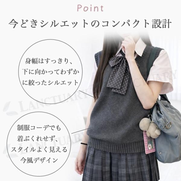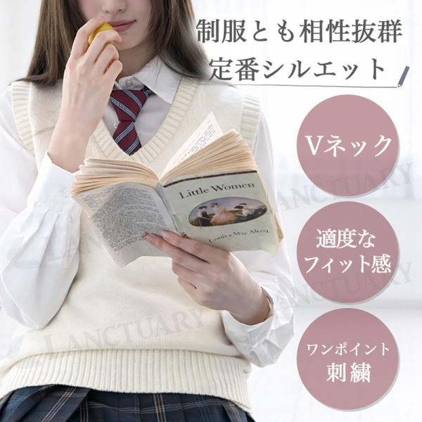 ハイスクール ベスト 制服 女子高生 中学 学生服 コーデ 定番 Vネック かわいい ニット シンプル ワンポイント 刺繍 清潔感 M L ホワイト グレー ネイビー 入学