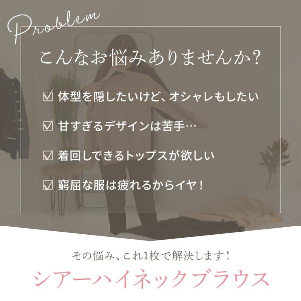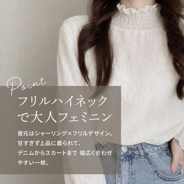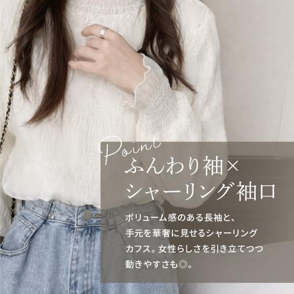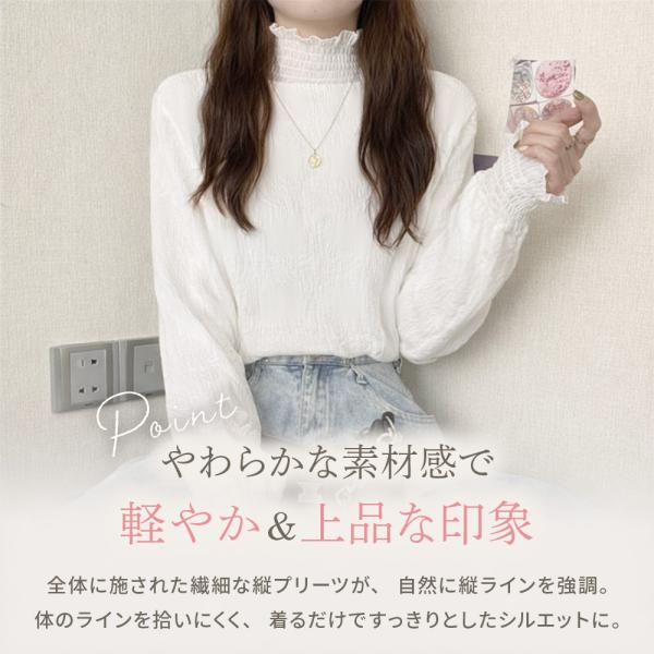 シアーハイネックブラウス ブラウス トップス 長袖 レディース シアー ハイネック フリル シャーリング スタンドカラー 立ち襟 おしゃれ