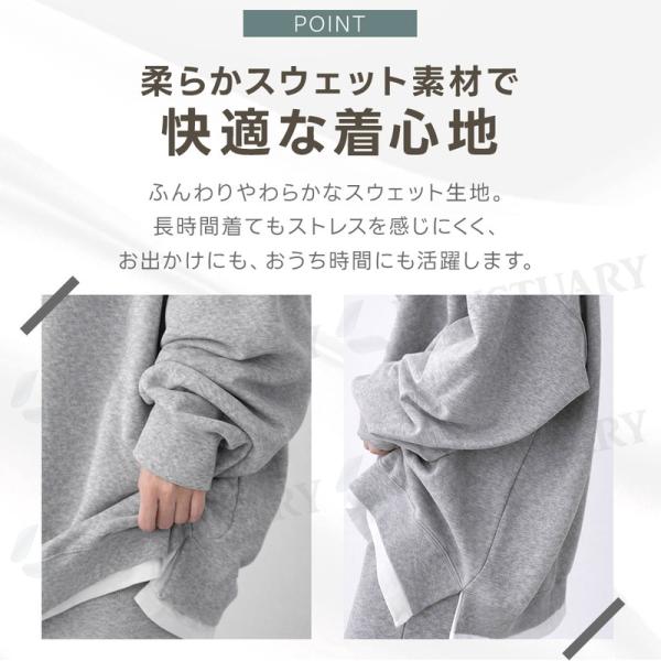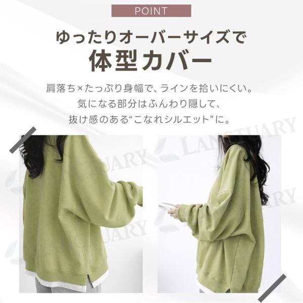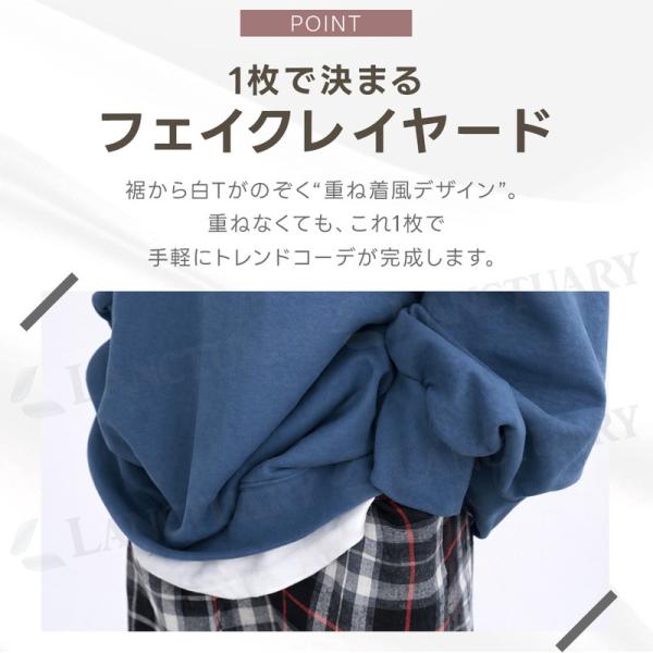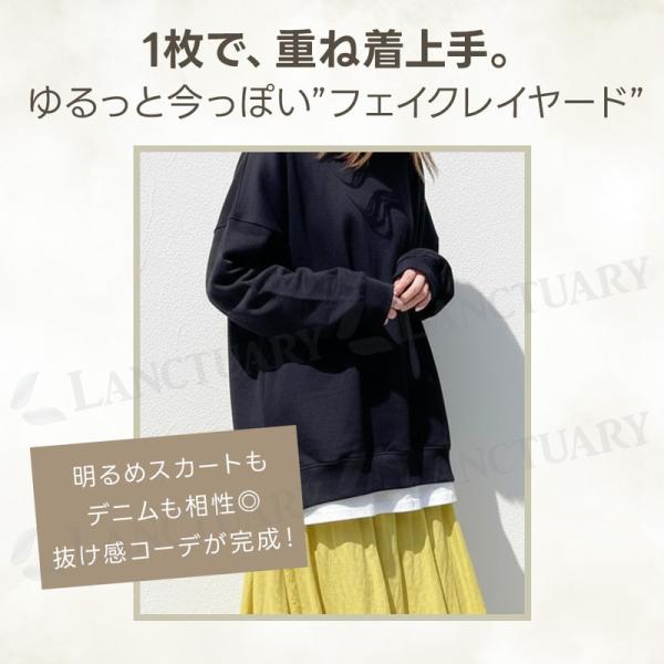 トレーナー レディース スウェット フェイクレイヤード 重ね着風 長袖 オーバーサイズ ゆったり 体型カバー ボリューム袖 無地 トップス プルオーバー