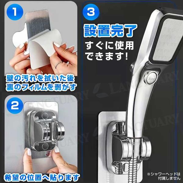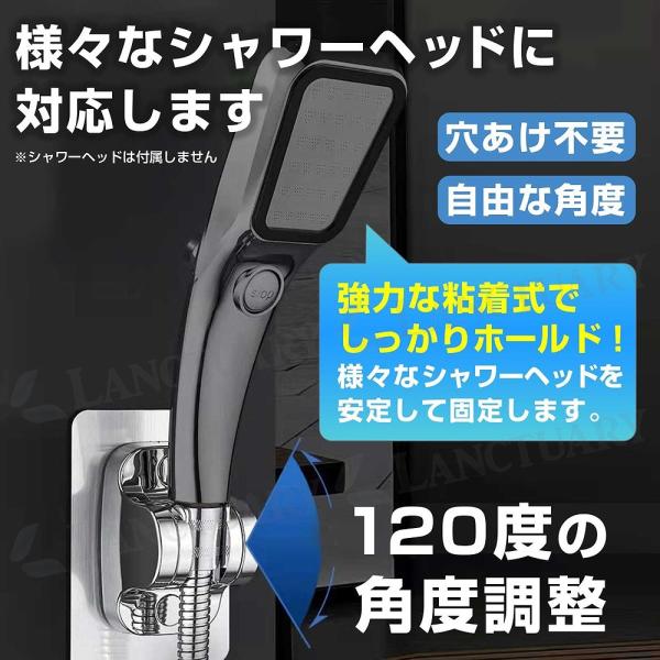 シャワーフック 2個セット 粘着タイプ 角度調節 ホルダー スタンド 高さ調整 バスルーム 穴あけ不要 防水 シャワーヘッド 浴室 バス用品 ポイント利用 爆買