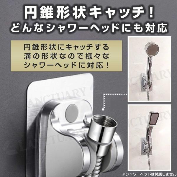 様々なシャワーヘッドに対応し円錐型の溝がヘッドをキャッチ!高密着でがっちり固定します。2個セットなのでお好みの高さを2箇所設置できます。