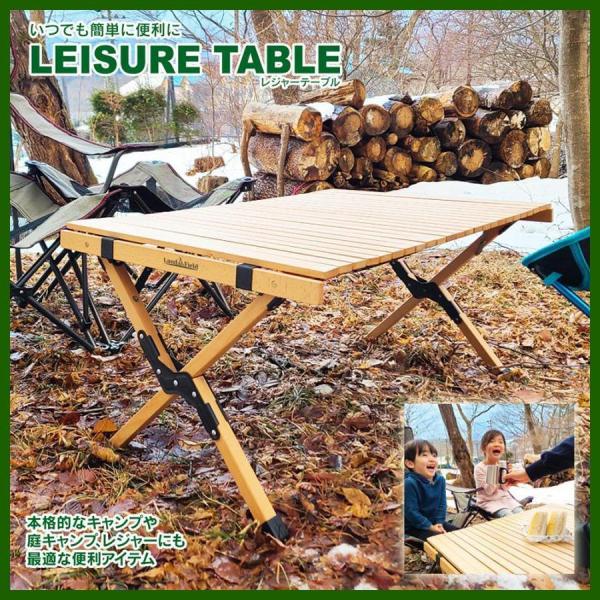 テーブル アウトドア キャンプ 木製レジャーテーブル アウトドアテーブル ウッドロールテーブル 折りたたみ 90×60cm 天然 ブナ材 Landfield LF-LT090 公式