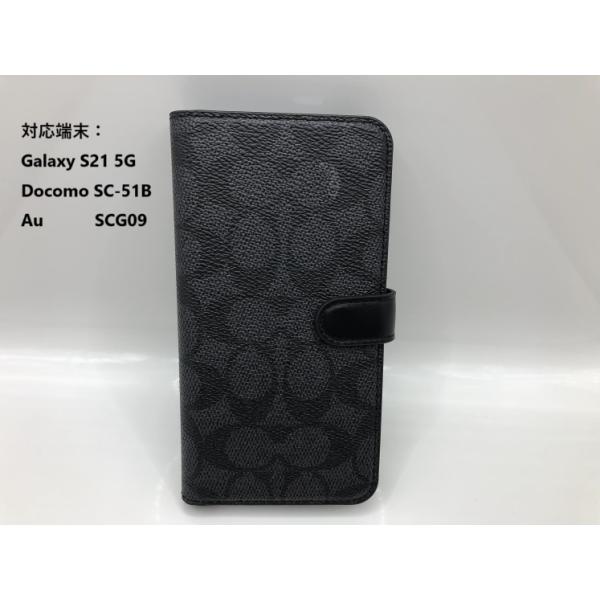 【国内正規品 】☆新品☆COACH コーチ Signature Black オシャレ 手帳型ケース For Galaxy S21 5G (Docomo SC-51B/AU SCG09)-----送料無料2450
