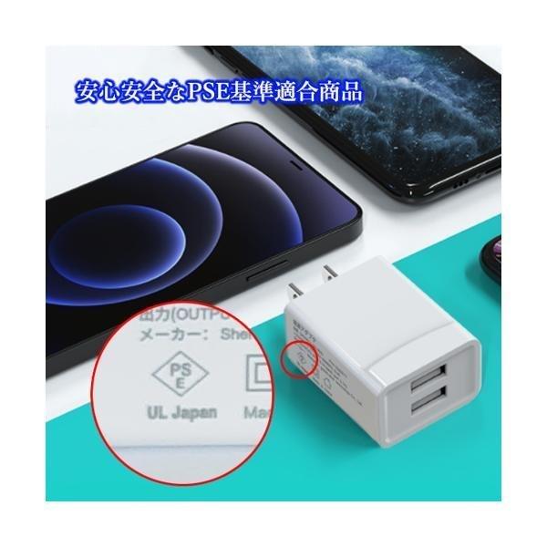 充電器 急速 タイプA USB充電器 iPhone スマホ ACアダプタ 充電アダプタ 2口 PSE認証 ホワイト ((S