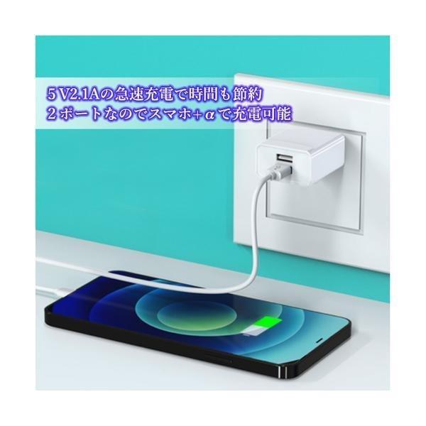 ACアダプター iPhone 充電 コンセント USB タップ 変換 2口 電源アダプター 2ポート 充電器 ホワイト