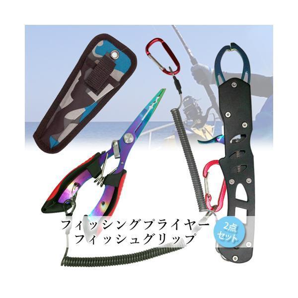 フィッシングプライヤー フィッシュグリップ セット 釣りグッズ 人間工学デザイン 錆びにくい ストラップ付 ロック付き